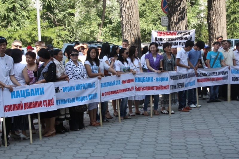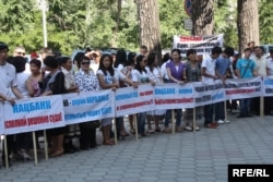 Жогорку Соттун жана Конституциялык палатанын судьялыгына тандоо "Достук" мейманканасында өтүп жаткан учурда анын алдында сотторго нааразы болгон адамдардын тобу пикетке чыкты. Алар Сотторду тандоо кеңешинин курамында жана талапкерлердин арасында адилетсиз чечим чыгарып келгендер көп деп эсептешет: