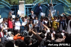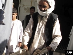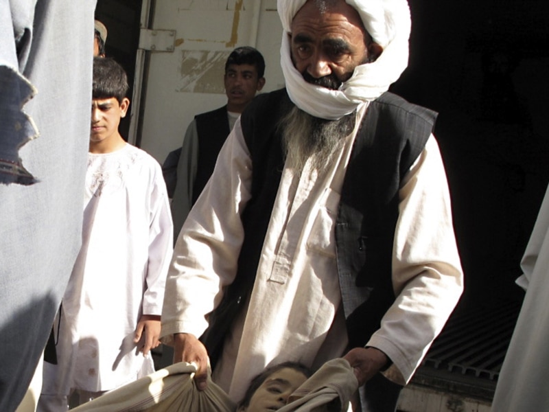 Оогандар НАТОнун авиачабуулунда курман болгон баланын жасатын Лашкар Гах ооруканасында көтөрүп баратышат. Гелманд провинциясы. 29-май 2011